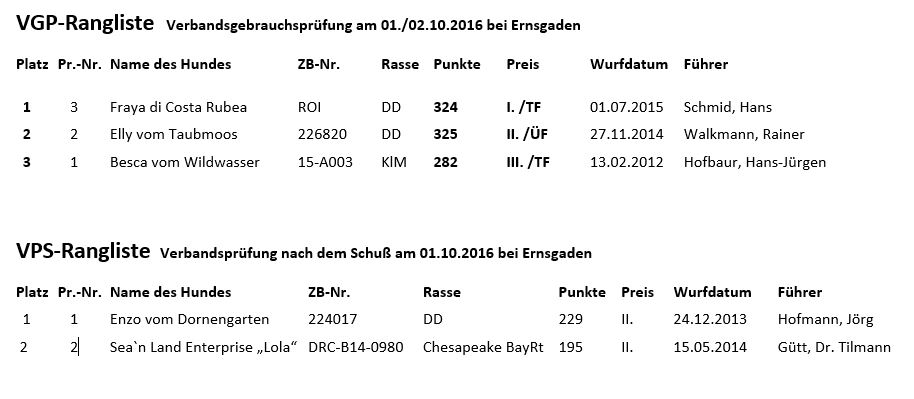 VGP VPS Ernsgaden 2016 - Jagdgebrauchshundeverein Donau-Altmühlecke e. V.